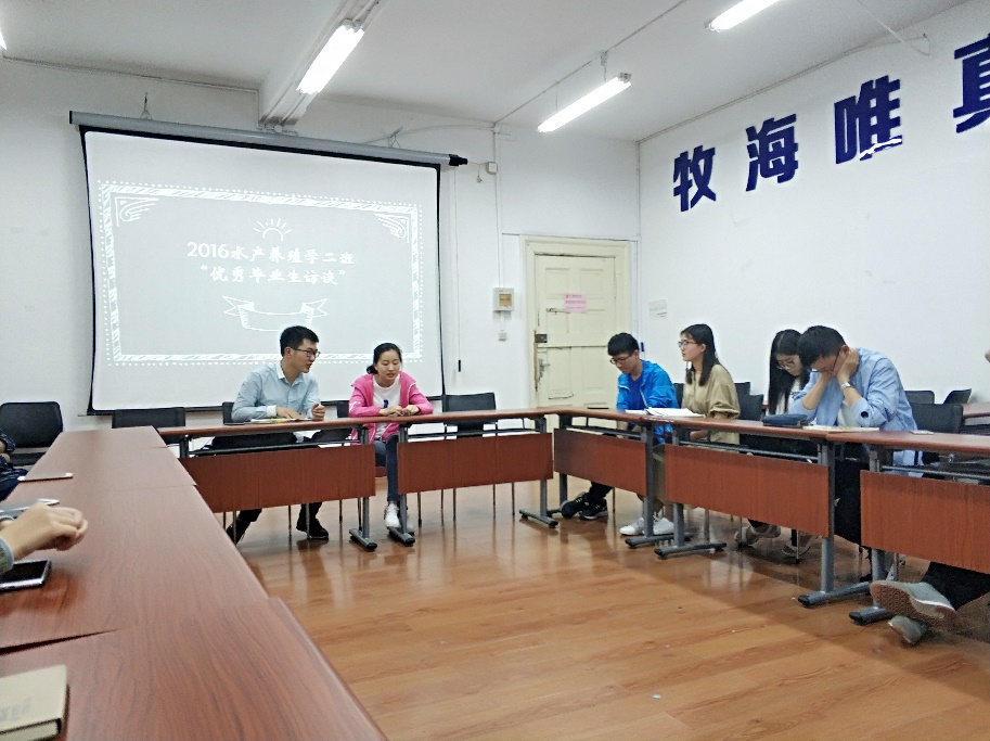 本支部于6月8日在水产学院档案馆养殖多媒体教室开展了“‘取经大会’——优秀毕业生访谈”活动,邀请到了优秀的大四毕业生陈艺文学姐和孙贺学长来和大家讲述他们的大学生活和今后规划,同时为同学们答疑解惑,从而帮助同学们更好地制定切实可行的计划。
