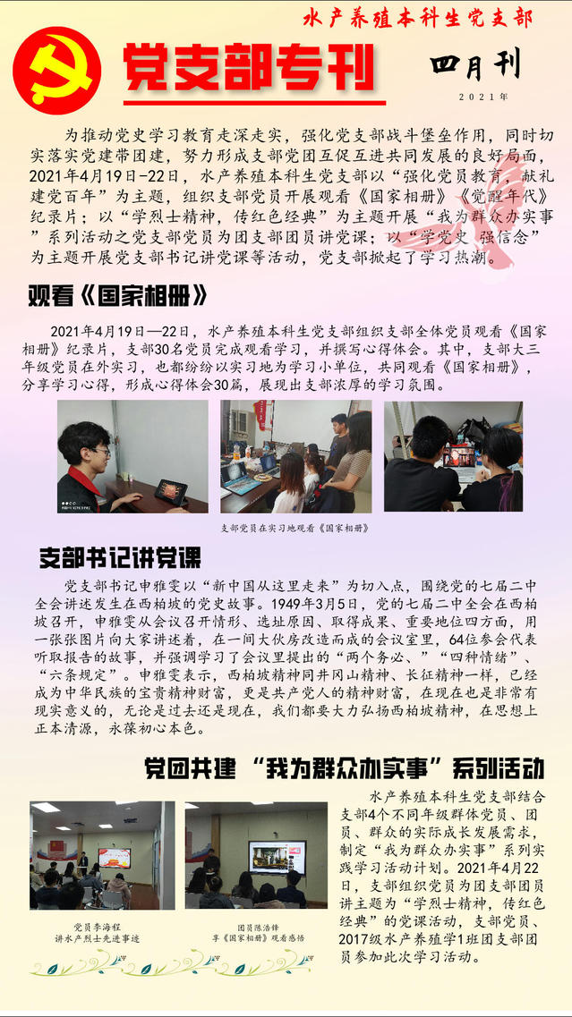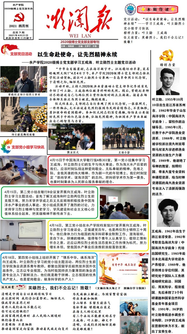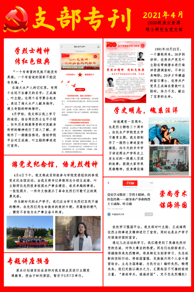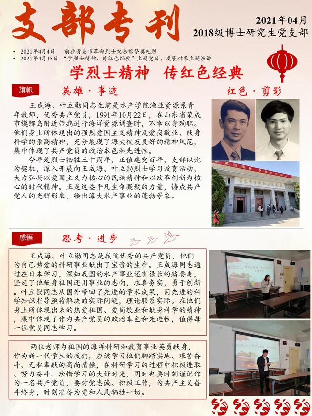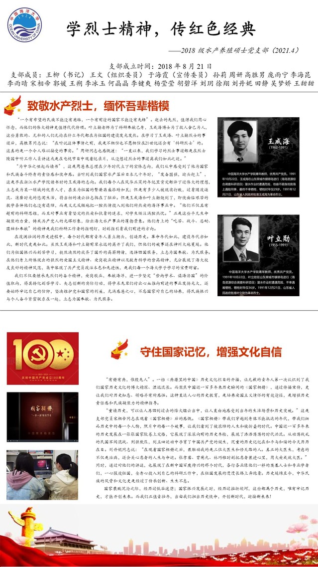 水产学院党史学习教育之“学烈士精神、传红色经典”支部专刊