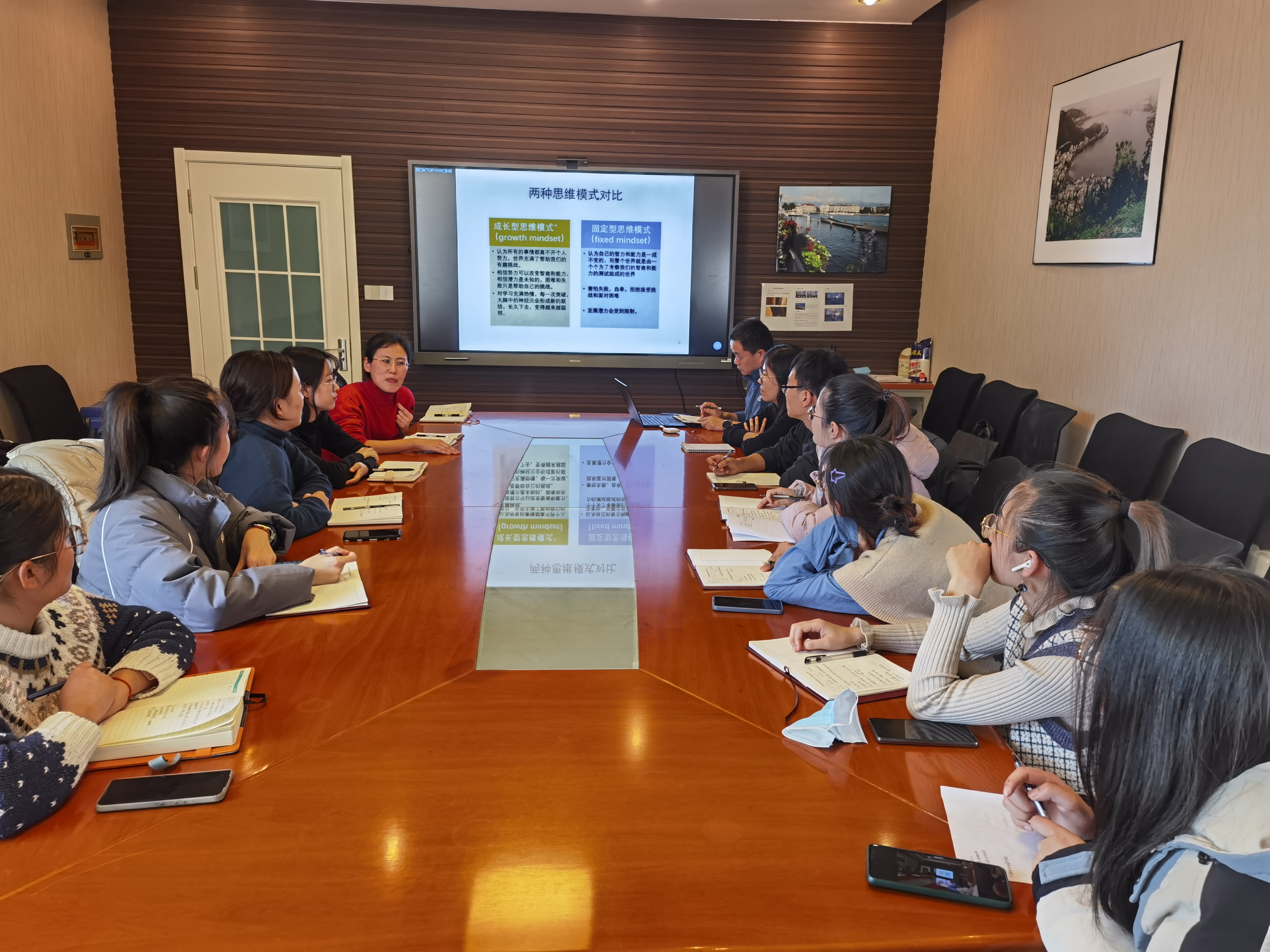 在会议中,进化所教工支部书记马洪钢老师为 2019 级水生生物硕士研究生党支部全体党员讲了主题为“加强党员自我修养,积极投身科研工作”的党课,党课主要包括加强党史学习,紧跟时事和热点,加强自身修养、积极进取,立足本职、为群众多做实事几个方面的内容。老师作了思维方式和非暴力沟通告,教导我们在日常和科研生活中要以成长型的思维方式看待自己和周围的人或者事物,并分享了自己的科研经验,指导党员在科研过程中要放平心态,找对方法。