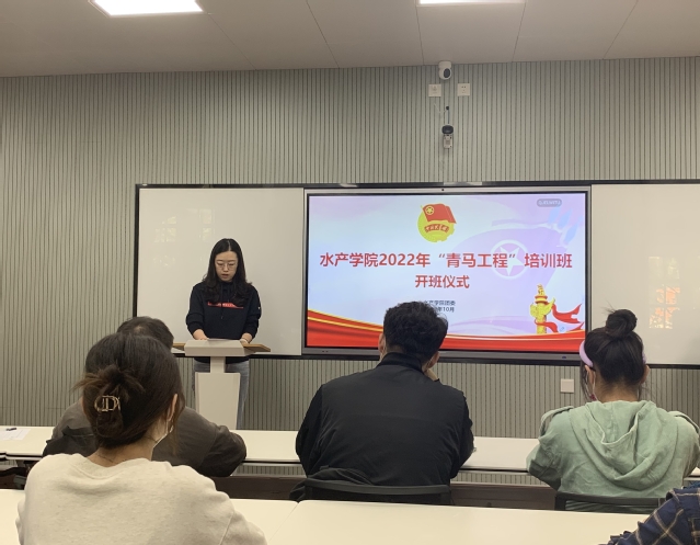 水产学院2022年“青马工程”培训班开班仪式于10月16日上午在鱼山校区档案馆举办,本次培训班以“喜迎二十大、永远跟党走、奋进新征程”为主题,学员涵盖团支部书记、团支部委员和学生会组织骨干成员共42人。开班仪式由学院辅导员刘鹏主持,水产学院团委书记耿雪晨、辅导员王世晨参加。