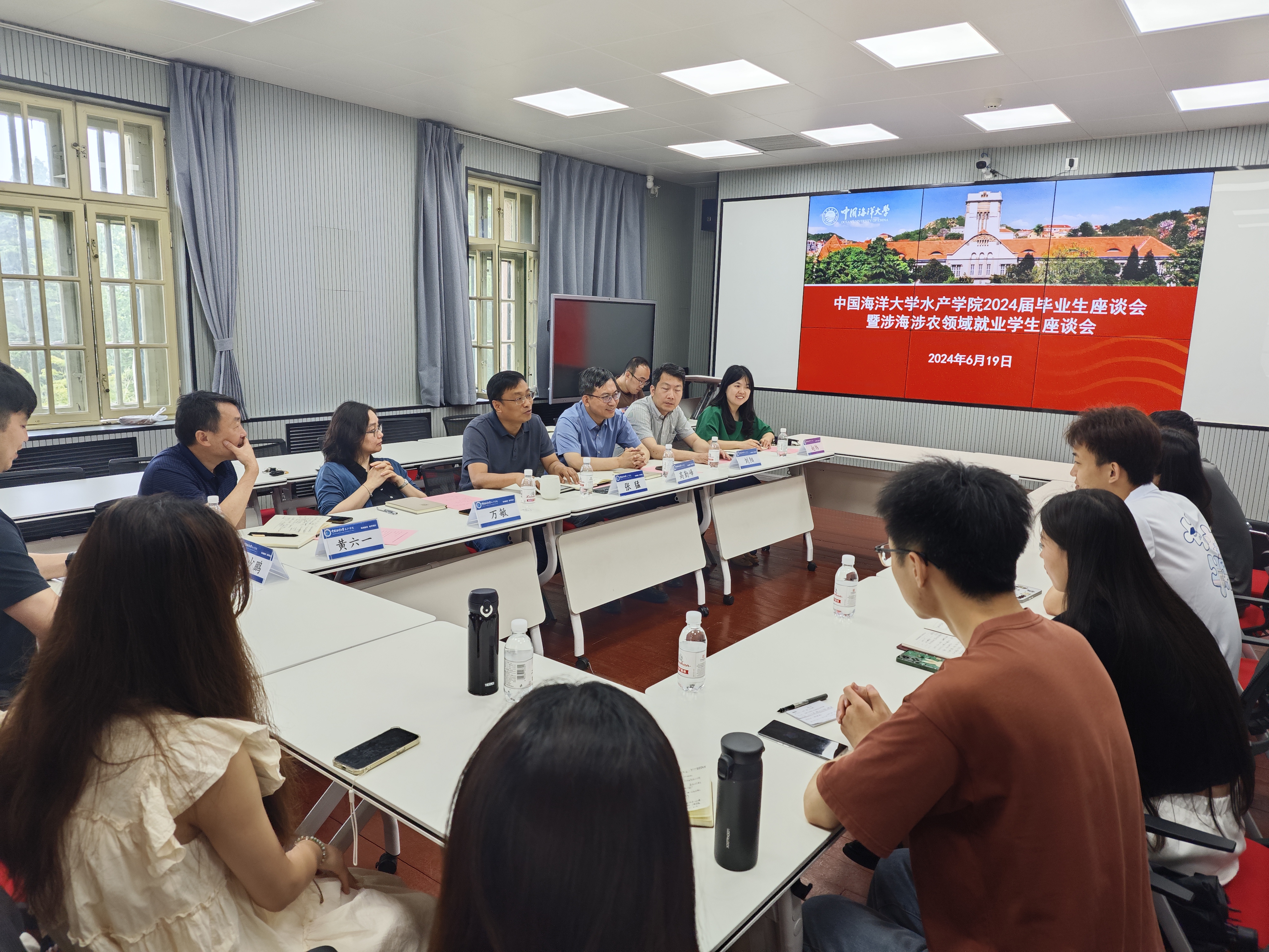 为做好毕业生的思想政治教育和服务管理工作,充分了解毕业生就业情况及对学校学院发展建设的意见建议,同时积极鼓励和引导更多毕业生投身“蓝色粮仓”事业,到产业一线、西部地区以及基层建功立业,6月19日,学院举办了2024届毕业生座谈会暨涉海涉农领域就业学生座谈会。学院党委书记张猛、副院长高勤峰、副院长万敏、副院长刘阳以及各系负责人、院办负责人、辅导员与毕业生代表相聚一堂,共叙在海大学习生活的成长感悟和对学院发展建设的建议意见,会议由学院团委书记刘少鹏主持。