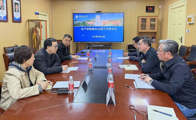 为深入推进教材数字化建设,助力水产学科高质量发展,4月16日上午,水产学院在铭史楼301会议室组织召开教材出版工作座谈会。会议邀请科学出版社编辑王玉时老师来校开展专题交流。水产学院副院长高勤峰主持会议。