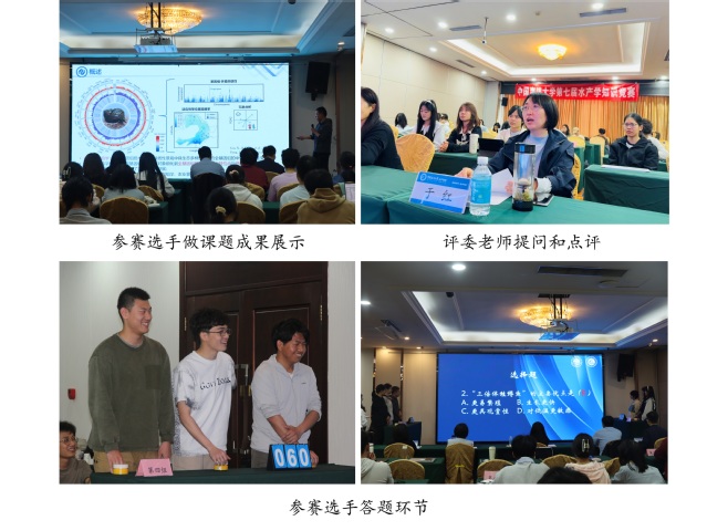 经过初赛和复赛的激烈选拔,共有9支队伍27名同学进入决赛。决赛共设课题成果展示与水产知识必答题、抢答题环节。最终评选出特等奖1支队伍、一等奖2支队伍、二等奖3支队伍和三等奖3支队伍,由评委老师们为获奖队伍进行颁奖。本次比赛获得特等奖和一等奖的3支队伍将代表学校参加第三届全国大学生水产类创新实践能力大赛区赛。