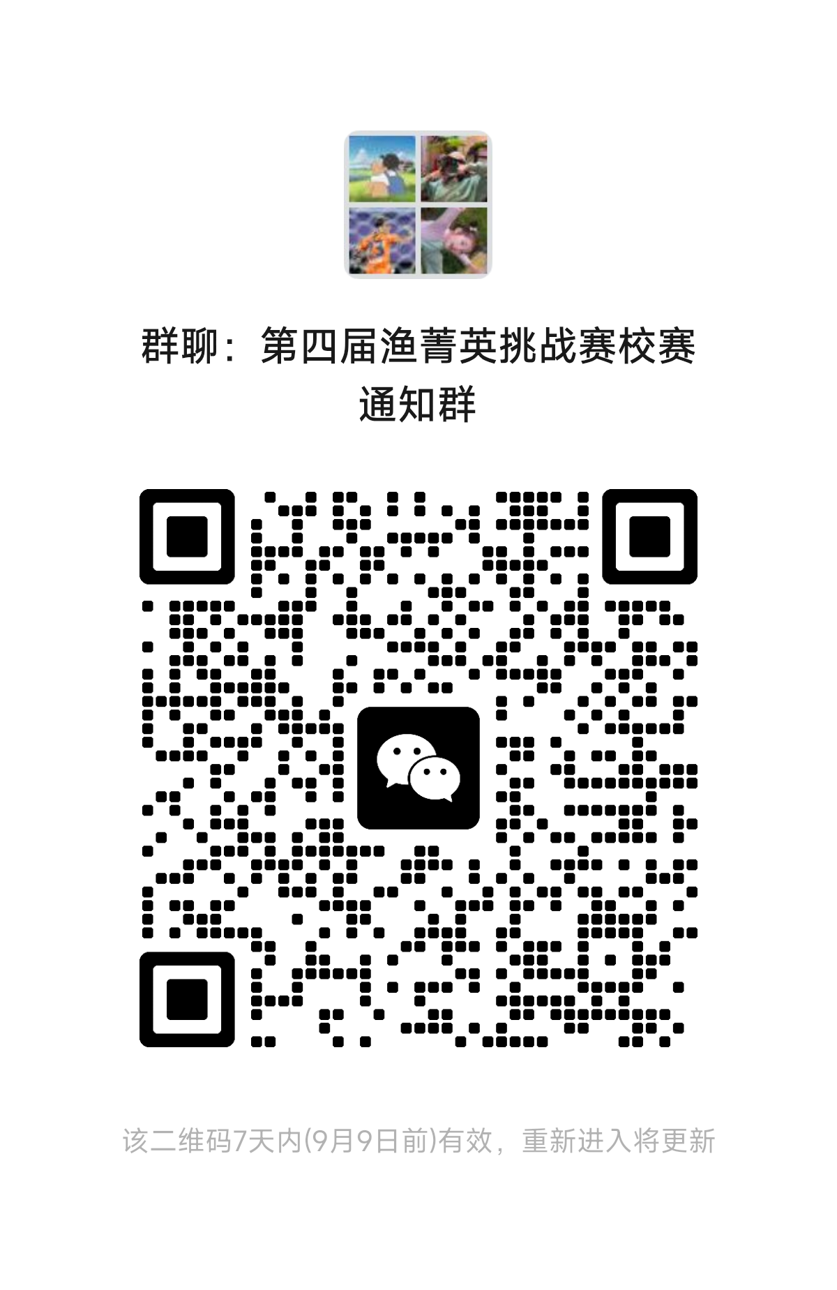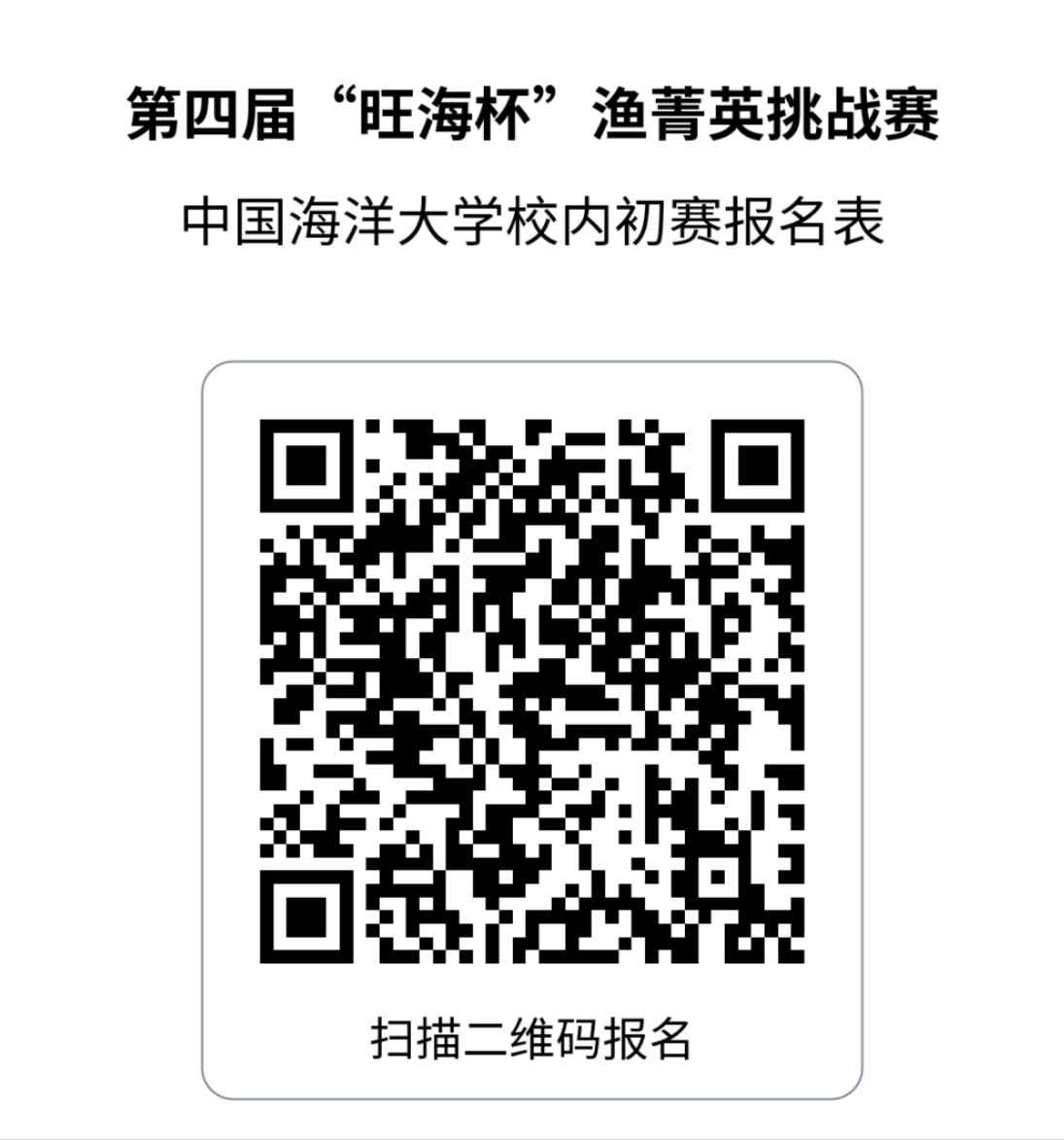 2025年9月5日14:00前填写第四届“旺海杯”渔菁英挑战赛开云电竞网址校内初赛报名表(点击报名,或扫描下方二维码报名),并加入第四届“渔菁英挑战赛”校内初赛通知微信群,相关通知会及时通过此群发布。