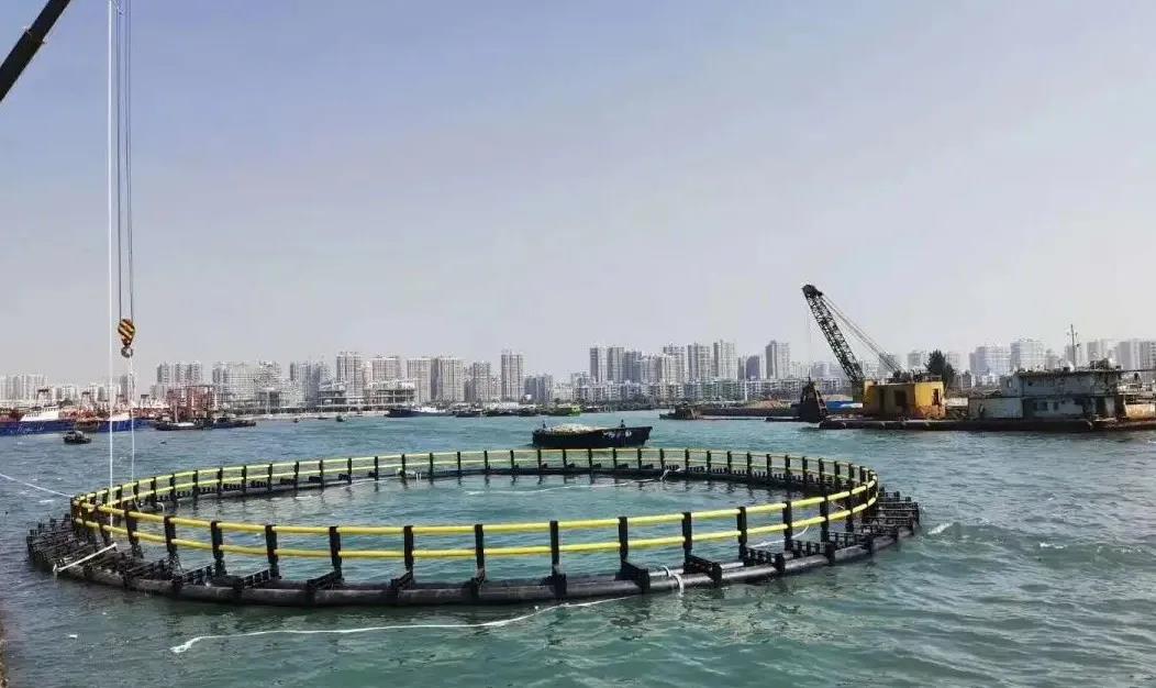 长鲸一号供图/黄滨 “长鲸一号”是全球首个深水坐底式养殖大网箱和首个实现自动提网功能的大网箱,预计每年能养1000吨鱼。该装置集成了网衣自动提升、自动投饵、水下监测等自动化装备,日常仅需4名工人即可完成全部操作,可实现自动投饵、自动水下清洗渔网,自动提升网衣等步骤。