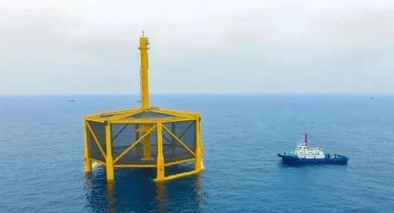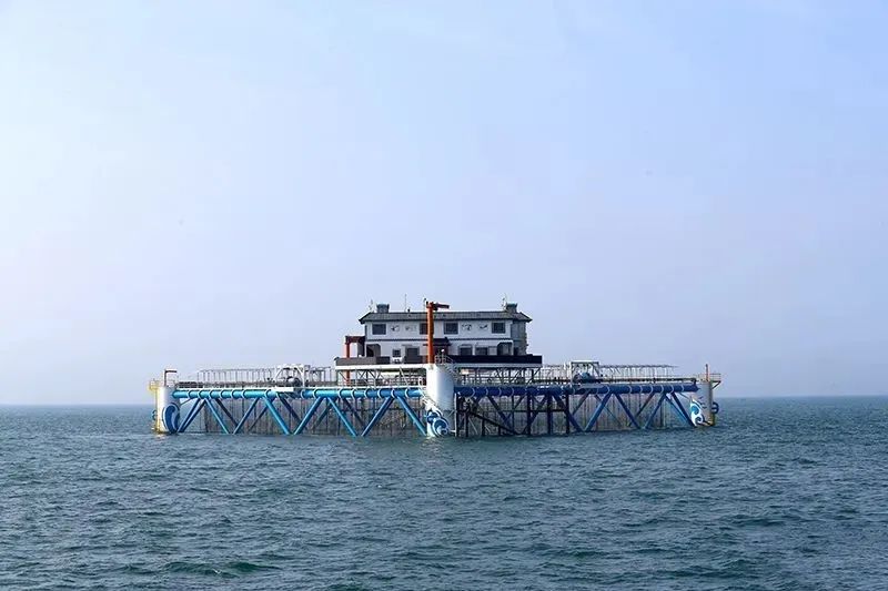 德海一号供图/黄滨 “德海1号”是全球第一艘浮体与桁架混合结构的万吨级智能化养殖渔场。从外形上看酷似一艘带艉浮箱的船,但实际上是养殖网箱,养殖水体可达3万立方米。适合在我国完全开放、水深20~100米的海域使用。