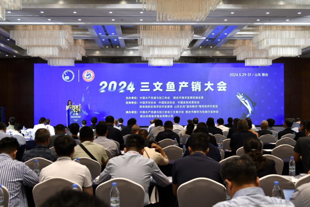 为进一步加强水产行业间交流与合作,拓展国内外三文鱼市场,延伸产业链,促进三文鱼产业高质量发展,5月29日-6月1日,2024三文鱼产销大会在山东烟台召开。本次大会由中国水产流通与加工协会、烟台市海洋发展和渔业局主办,中国水产流通与加工协会三文鱼分会、烟台市餐饮与住宿行业协会、烟台经海海洋渔业有限公司承办,并得到中国烹饪协会、中国饭店协会、中国连锁经营协会、黄渤海新区海洋经济发展局、山东长岛“蓝色粮仓”海洋经济开发区的大力支持。来自全国三文鱼相关企业、研究所、大学等单位300余人参会。 在开幕式环节,烟台市人民政府、山东省农业农村厅、中国水产科学研究院、全国水产技术推广总站、中国烹饪协会、中国饭店协相关领导致辞。中国水产流通与加工协会副会长兼秘书长王雪光发布《中国三文鱼产业报告》。