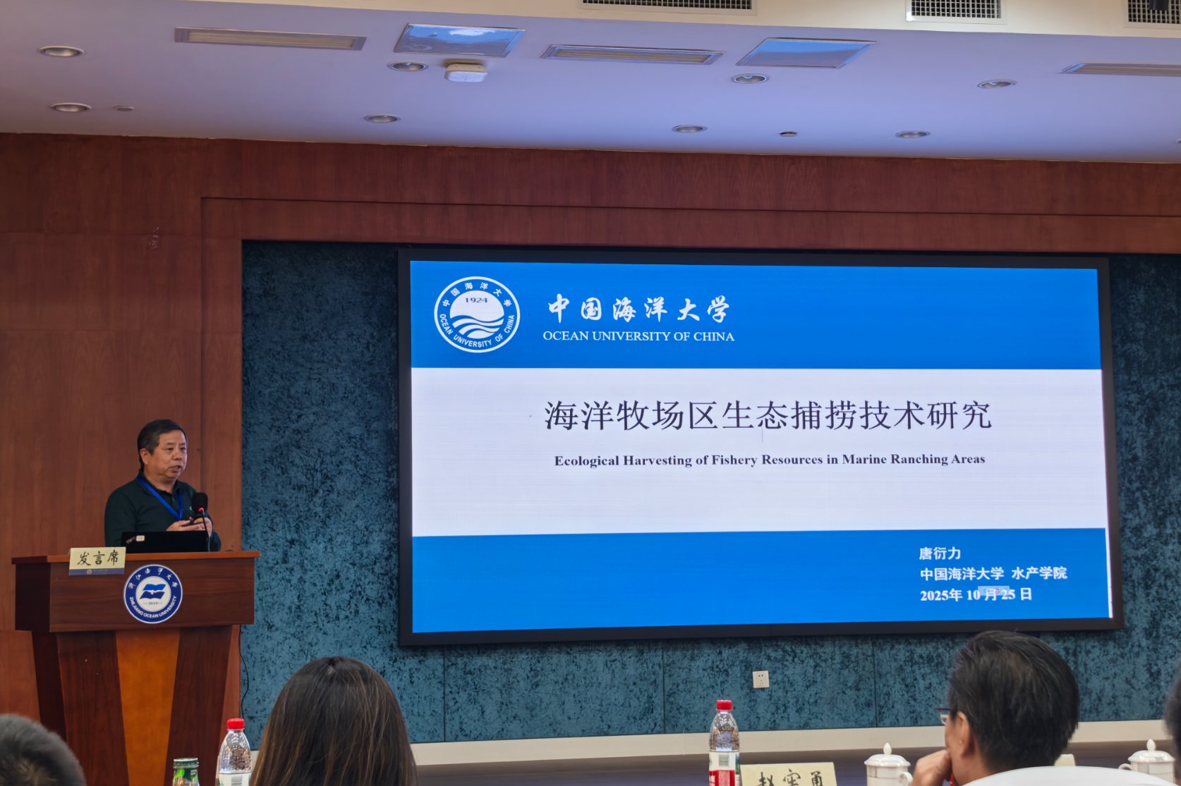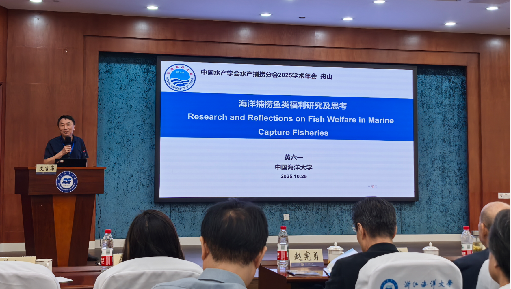 会议期间,唐衍力教授、黄六一教授应邀分别以“海洋牧场区生态捕捞技术研究”和“海洋捕捞鱼类福利研究及思考”为题目在大会上作主旨报告。