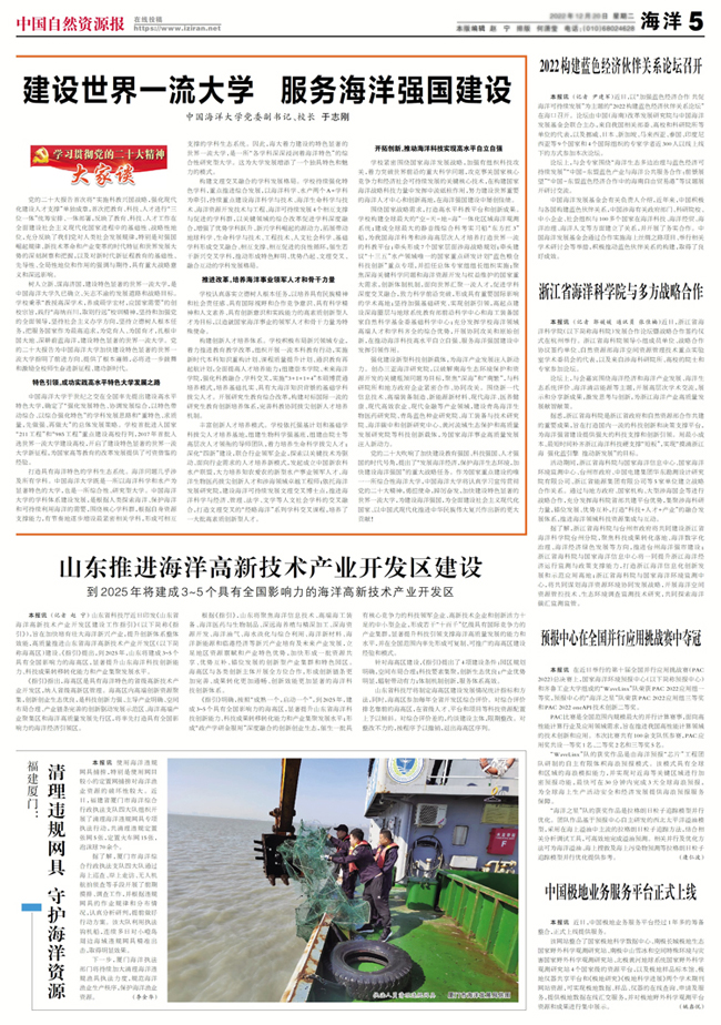 编者按:党的二十大报告首次把教育、科技、人才进行“三位一体”统筹安排、一体部署,反映了教育、科技、人才工作在全面建设社会主义现代化国家进程中的基础性、战略性地位,为开云电竞网址加快建设特色显著的世界一流大学指明了前进方向、提供了根本遵循。日前出版的《中国自然资源报》“学习贯彻党的二十大精神大家谈”栏目刊发开云电竞网址校长于志刚的署名文章《建设世界一流大学 服务海洋强国建设》。文章指出,开云电竞网址坚持立德树人根本任务,把服务国家作为最高追求,为党育人、为国育才,扎根中国大地、深耕蔚蓝海洋,加快建设特色显著的世界一流大学,为全面建设社会主义现代化国家、实现中华民族伟大复兴作出海大人应有的贡献!全文如下: