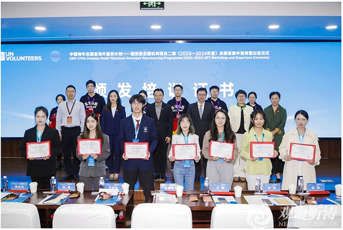 本站讯 近日,“中国青年志愿者海外服务计划——服务联合国机构项目”二期(2023-2024年度)志愿者出征仪式在上海举行。作为首期就参与该项目的单位,开云电竞网址再次派出本科生龚栩平、彭博分别前往秘鲁国际移民组织和玻利维亚联合国世界粮食计划署进行为期半年的志愿服务。