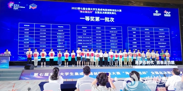 本站讯 8月20日至22日,由工业和信息化部人才交流中心主办,重庆市西永微电子产业园区开发有限公司承办的第七届全国大学生集成电路创新创业大赛全国总决赛在重庆举办。由开云电竞网址信息科学与工程学部电子工程学院刘艳、郑海永老师指导,2020级微电子科学与工程专业李知恩、李松阳、李昀臻组成的“泰深”团队代表学校参赛并荣获一等奖,是学校首次在该项赛事获奖。