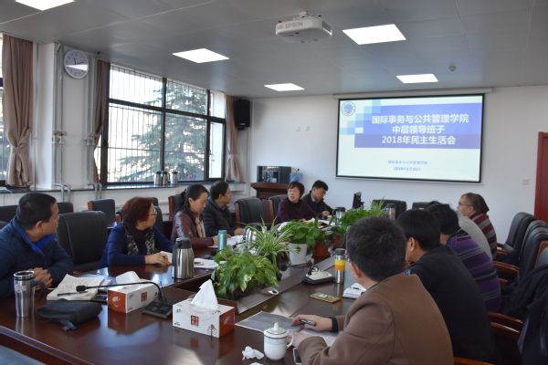 根据上级统一部署和学校《关于开好学校中层领导班子2018年度民主生活会的通知》要求,为强化创新领导班子理论武装,树牢“四个意识”,坚定“四个自信”,勇于担当作为,以求真务实作风坚决把党中央决策部署落到实处,1月21日下午,国际事务与公共管理学院党政领导班子在学院学术报告厅召开民主生活会。学院党委书记庄岩主持会议,联系校领导李华军副校长出席会议并指导,学院党政班子成员参加。