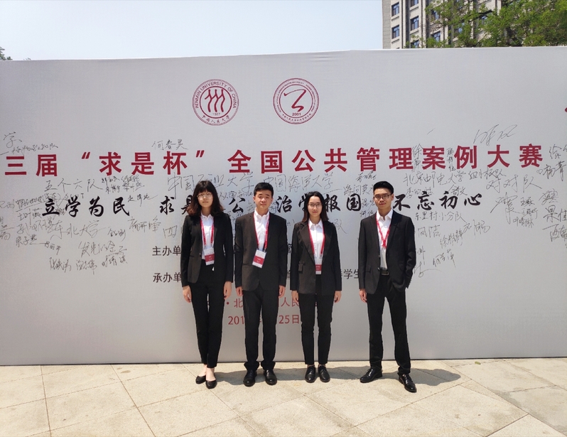 中国人民大学第三届“求是杯”全国公共管理案例分析大赛自今年1月份启动以来,吸引了来自全国各高校本科学子的密切关注。我院何俊涛、温碧霞、叶高升、马慧四位本科生组建的“海河英才队”在毛万磊博士的指导下,在全国266支队伍中脱颖而出,成功入围5月24日在中国人民大学举办复赛。复赛采取两两对辩的形式,由评委现场打分,并最终按照60%的现场得分与40%的初审得分得出最终得分。最终,“海河英才队”挺进八强,并获得三等奖的好成绩。