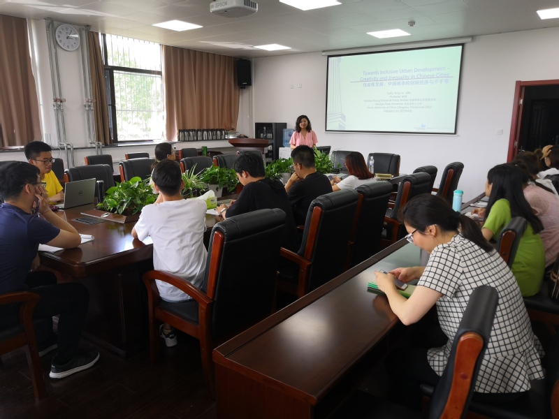 6月26日,美国佐治亚州立大学安德鲁杨公共政策学院公共管理与政策系教授,博士生导师刘阳教授做客海大人文讲坛,带来了一场题为“包容性城市发展:中国城市的创新经济和不平等”的学术报告,国际事务与公共管理学院李辉教授主持报告,杨洋副教授、李睿倩副教授、毛万磊博士等30余位师生前来聆听报告会。此次报告会吸引了来自我校文新学院文化产业管理专业、山东大学、青岛大学的师生前来参加。