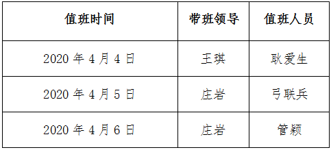 5. 值班结束后,要检查门窗水电是否关好,并将钥匙交回至一楼值班室