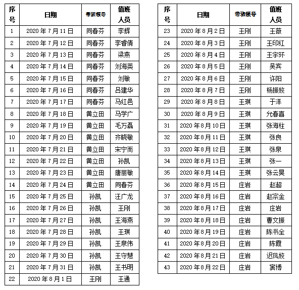 7. 值班人员按照姓名拼音排序,全年值班统一循环安排