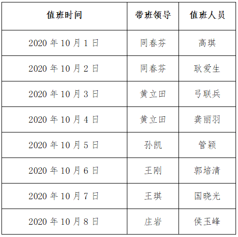 5. 值班结束后,要检查门窗水电是否关好,并将钥匙交回至一楼值班室