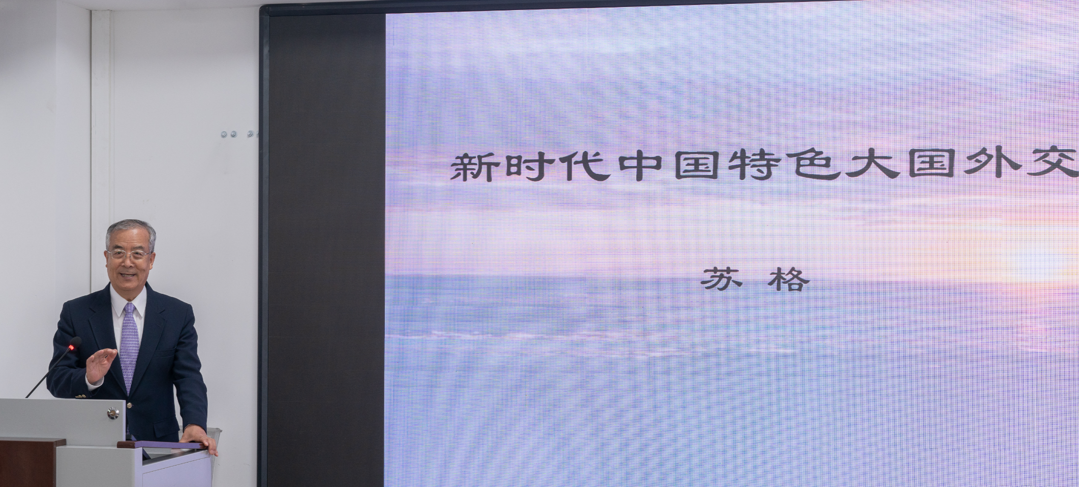 6月16日下午,中国国际问题研究院前院长、党委书记苏格大使做客海大人文讲坛(暨海大国管致远讲坛第28期),以“新时代中国特色大国外交”为主题,在国际事务与公共管理学院智慧实验室为近百名师生做了一场别开生面的专题学术报告。本次报告由国际事务与公共管理学院金永明教授主持,王琪院长致欢迎辞。
