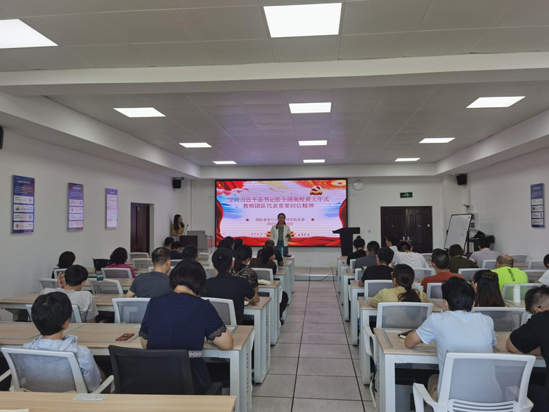 为深入学习贯彻习近平给全国高校黄大年式教师团队代表的回信(以下简称回信)精神,进一步加强师德师风教育,9月16日下午,国际事务与公共管理学院党委组织全体教职员工学习回信原文,并观看电影《黄大年》,学习师德楷模的先进事迹。学院全体教职工参加学习会,会议由党委书记庄岩主持。