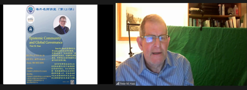 2021年11月18日晚上,美国麻省大学Amherst校区政治学系教授Peter M. Hass应邀做客海大海外名师讲堂,做了题为Epistemic Community and Global Governance的学术讲座。国管学院马红邑老师、马克思主义学院张亮老师等线上线下80余人参加讲座。本次讲座由孙凯副院长主持。