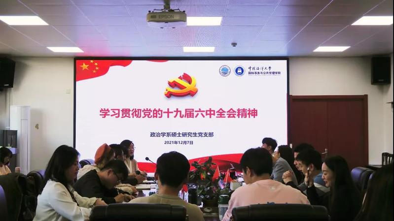 2021年12月7日下午,政治学系硕士研究生党支部“回望百年路,奋进新征程”—学习贯彻党的十九届六中全会精神主题党日在学术报告厅顺利举办。此次活动以师生共建的形式联合政治学系教工党支部与本科生第一党支部共同举办。政治学系教工党支部陈霞老师、王通老师及董利民老师受邀参加活动。此次主题党日活动由政治学系硕士研究生党支部书记陈玉寒同志主持。