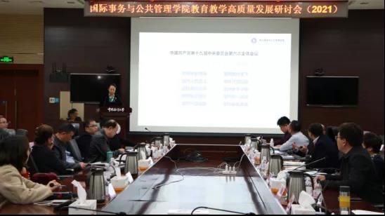 11月27日,国际事务与公共管理学院在开云电竞网址图书馆第一会议室组织召开学习党的十九届六中全会精神,推动教育教学高质量发展研讨会,会议由学院党委书记庄岩主持。