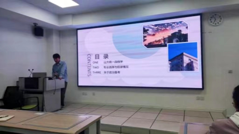 首先,弓联兵老师从政治学与行政学专业升学率、考研院校与学科的选择、考研注意事项等方面进行讲解,他分析了考研的现实性与必要性,认为同学们应该多与老师、学长学姐多沟通交流,要早点规划、脚踏实地,并针对同学们的疑问进行解答。