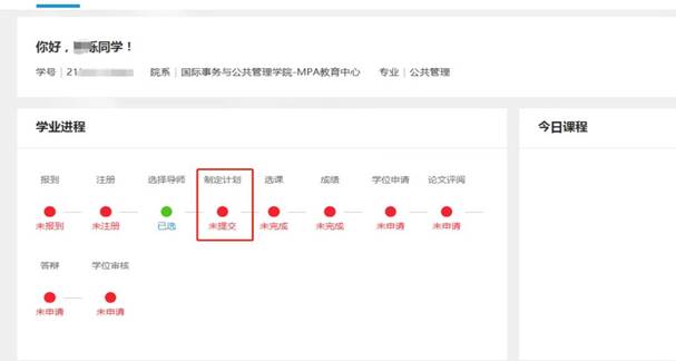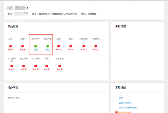 “导师双选”及“制定培养计划”成功后,主页显示如下: