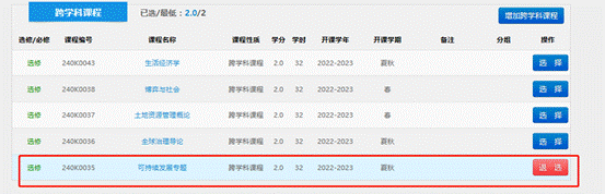 找到“跨学科课程”,选择《可持续发展专题》这1门课