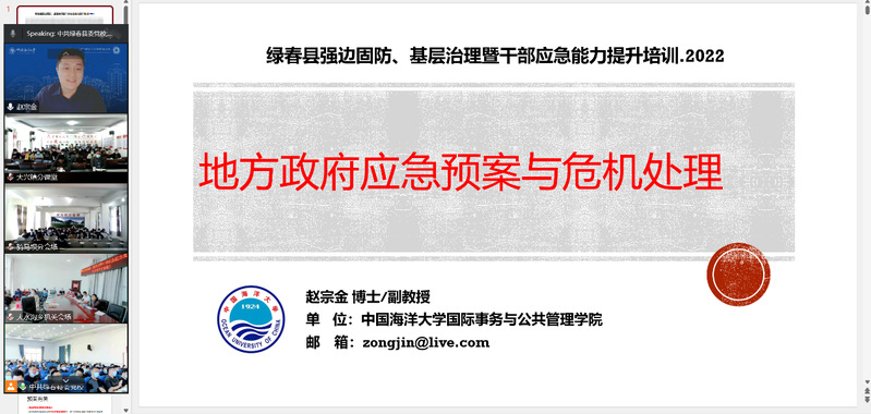 赵宗金副教授做了题为“地方政府应急预案与危机处理”的专题报告。报告从国务院事故调查组调查报告典型案例入手,结合地方政府应急管理的具体案例,分别讨论了应急预案的背景与涵义、地位与角色、类型与层次、过程与原则以及落实与执法等重点内容。