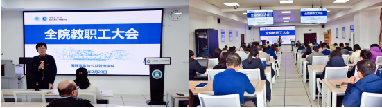 春回大地,万象更新!2023223日下午,国际事务与公共管理学院召开入学习宣传贯彻学校第十一次党代会精神动员大会暨2023年春季学期第一次全院教职工大会,会议由学院党委书记庄岩主持,全体教职工参会。