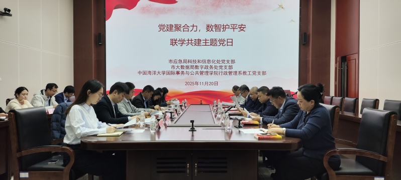 2025年11月20日下午,学院行政管理系教工党支部与青岛市应急管理局科技和信息处党支部、青岛市大数据发展管理局数字政务处党支部开展“党建聚合力,数智护平安”联学共建主题党日活动。市应急局科技和信息处支部书记、处长司磊,市大数据局数字政务处支部书记、处长孙磊志,学院党委副书记、院长王刚出席活动。