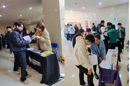 巡展会现场气氛热烈,同学们都带着对未来留学的期待积极与心仪的院校老师们进行交流。各院校代表为学生详细介绍各院校特色并就学生们关注的专业设置、语言条件、学习费用等问题热情指导。