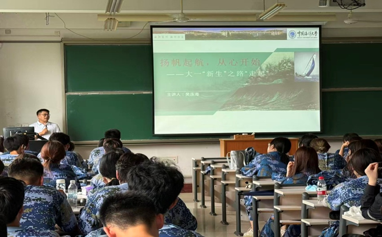 从紧张的军训节奏切换到多元的校园生活,心理适应成为新生面临的重要课题。为此,学院专门邀请心理健康中心吴连海老师带来“扬帆起航,从心开始”专题讲座。吴老师结合实际案例,讲解了大学生常见心理适应问题及应对策略,指导学生学会自我调适、积极求助,培养乐观向上的心态,快速融入新的学习和生活环境。