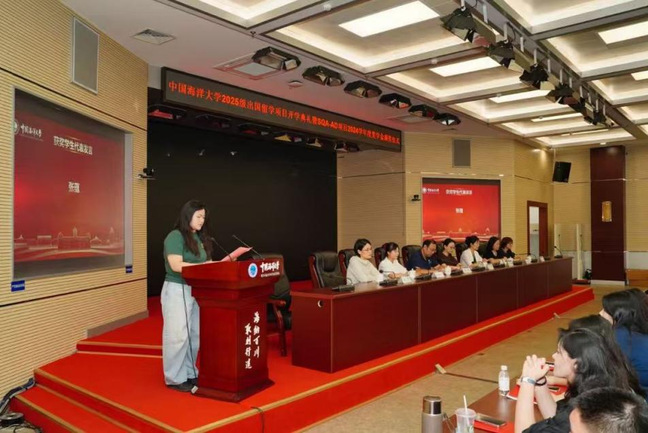 接下来发言的是2024级获奖学生代表张蕴。她表示将珍惜荣誉、再接再厉,不断拓展国际视野,积极传播中华文化,与同学们一道在海大国际教育学院绽放青春光彩。