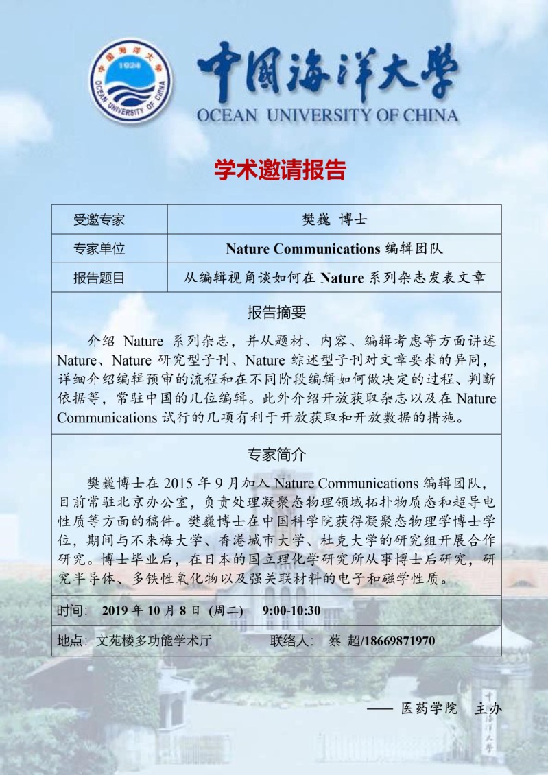 报告题目:从编辑视角谈如何在 Nature 系列杂志发表文章