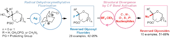 图 1.脱羟甲基氟代反应及氟代糖的多样性应用