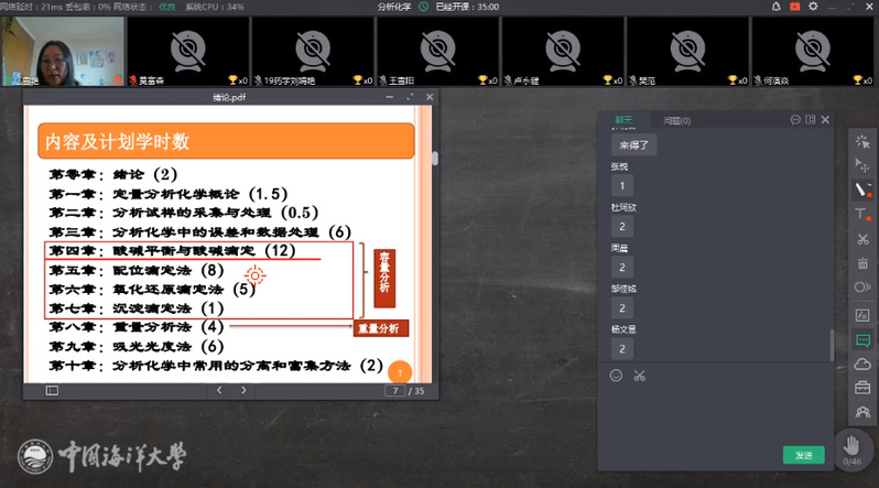 《分析化学》江雪艳老师使用Class In软件进行互动直播授课