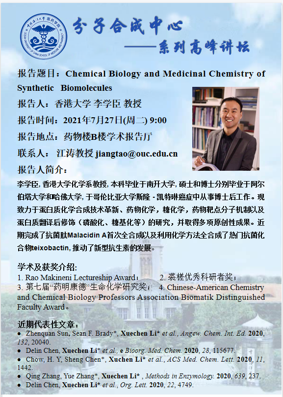 报告题目:Chemical Biology and Medicinal Chemistry of Synthetic Biomolecules