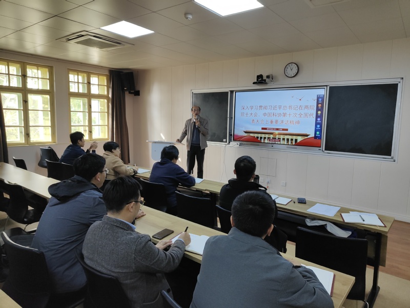 韩峰介绍了习近平总书记在两院院士大会中国科协十大上重要讲话的主要内容。习近平总书记的重要讲话,站在时代发展前沿,统筹中华民族伟大复兴战略全局和世界百年未有之大变局,科学分析当今世界科技革命和产业变革发展大势,深入总结党领导下我国科技发展的百年历程和辉煌成就,系统论述了科技创新在实现中华民族伟大复兴历史进程中的地位和作用,深刻阐明了新发展阶段实现我国科技自立自强的一系列重大问题,就推进新时代科技创新作出重要部署,为建设世界科技强国注入新的强大动力。