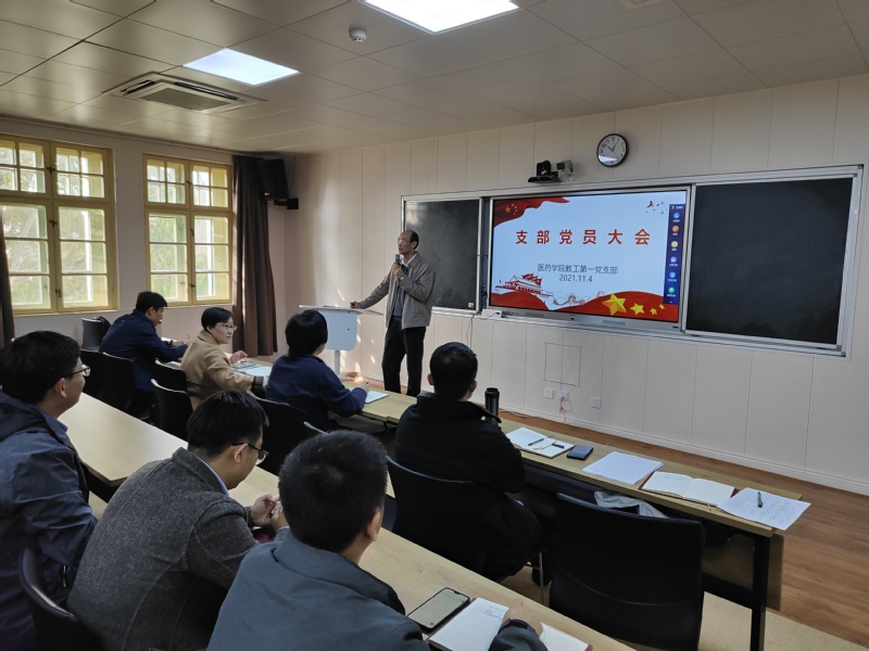 11月4日下午,医药学院教工第一、二党支部在地质馆300室召开党员大会,集体学习习近平总书记在两院院士大会、中国科协第十次全国代表大会上的重要讲话精神,会议由教工第一支部书记韩峰主持,全体党员参会。