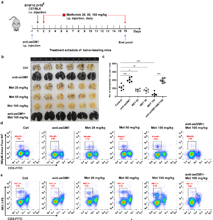 图示:二甲双胍增强NK细胞抗黑色素瘤体内肺转移作用