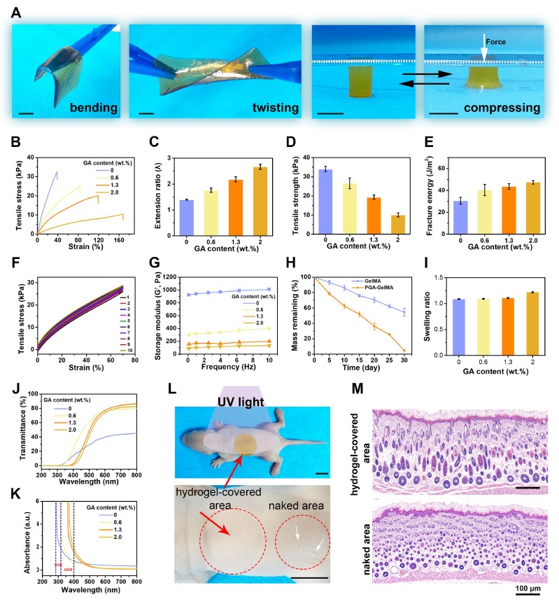图2. PGA-GelMA 水凝胶的物理性质