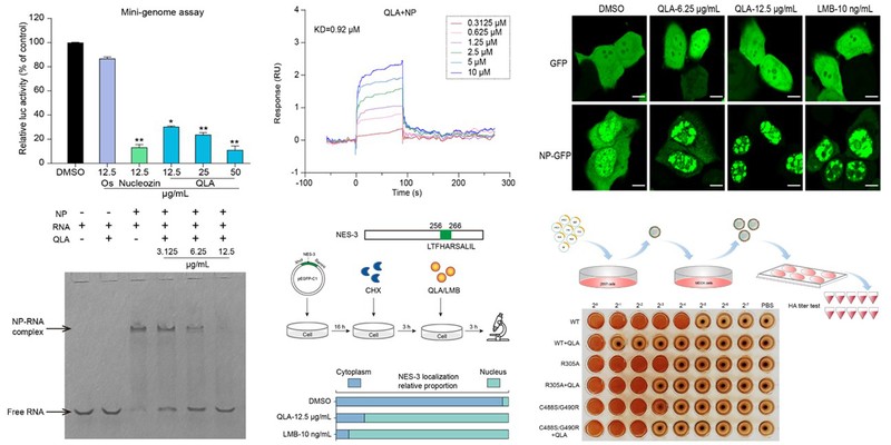 图1. QLA对NP蛋白不同功能的抑制作用研究