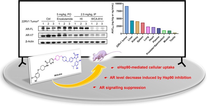 图1. AR拮抗剂-Hsp90抑制剂偶联分子WCA-814的结构与活性研究