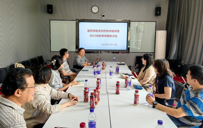 2023年10月11日上午,天然药物学教研室召开了2023年秋季学期的教学工作研讨会暨学院第三届教学比赛的教研室初赛,会议由教研室主任王乂教授主持,教研室副主任车茜副教授和教研室骨干及中青年教师到会参加研讨。