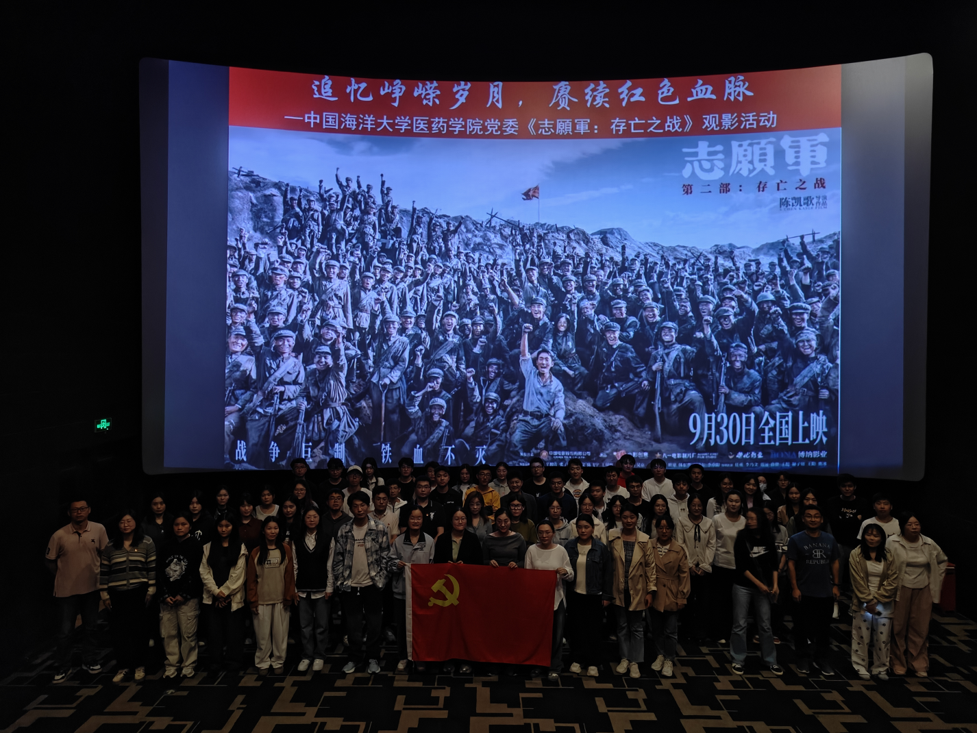 在中华人民共和国成立75周年之际,为进一步加强爱国主义教育,传承红色基因,增强广大党员的政治责任感和历史使命感,2024年10月-11月,医药学院党委分批次组织师生党员、入党积极分子观看爱国主义题材影片《志愿军:存亡之战》。