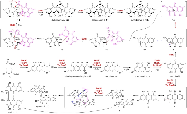 图1. Dothideomins C(9)和D(10)可能的生物合成路径