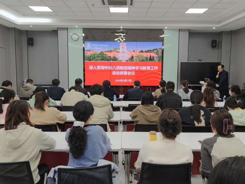 3月27日下午,医药学院召开深入贯彻中央八项规定精神学习教育启动部署会,学习中央党的建设工作领导小组相关会议精神及上级工作要求。学院党委书记王震主持会议并作工作部署,学院领导班子成员、全体党支部书记参加会议。