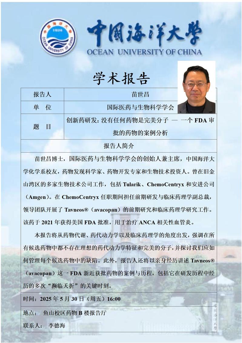 报告题目:创新药物研发:没有任何药物是完美分子 — 一个 FDA 审创新药研发:没有任何药物是完美分子